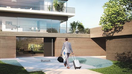 Pasirinkę įeigos kontrolės modulį Schüco BlueCon, duris galėsite atidaryti iš savo išmaniojo telefono. Durų spyną galėsite valdyti tiesiog mygtuko paspaudimu per mobiliąją programėlę išmaniajame telefone. Aktyvavus automatinio atrakinimo funkciją, durys atsidarys lyg savaime, net jei telefonas liks kišenėje. Ryšys tarp spynos ir išmaniojo telefono akimirksniu užmezgamas per Bluetooth sąsają. Beje, lauko durų dizainas liks nepakitęs, nes BlueCon modulis beveik nematomai paslepiamas durų užlaidoje iš vidinės pusės, taip apsaugant jį nuo smarkių liūčių ir viesulų.