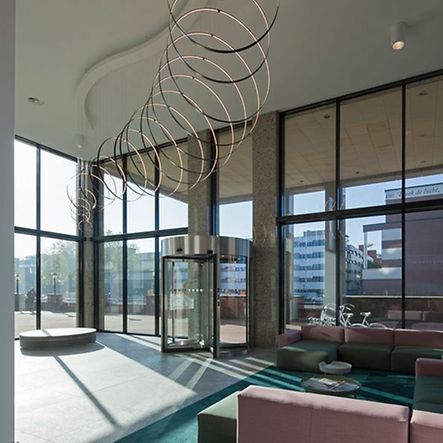 De Leeuwenbrug, nabij het NS-station van Deventer, is een toonbeeld van bouwkundige samenwerking. Met inspirerende bouwbedrijven is hard gewerkt aan het omtoveren van een verouderd gemeentepand, naar een kantoorlocatie waar heel de bedrijfstechnische regio zich wel wil vestigen. Naast de entree, die ervoor zorgt dat mensen zich direct welkom voelen, zijn er nu fijne zithoeken, een horecagelegenheid en talloze (flex)werkplekken.