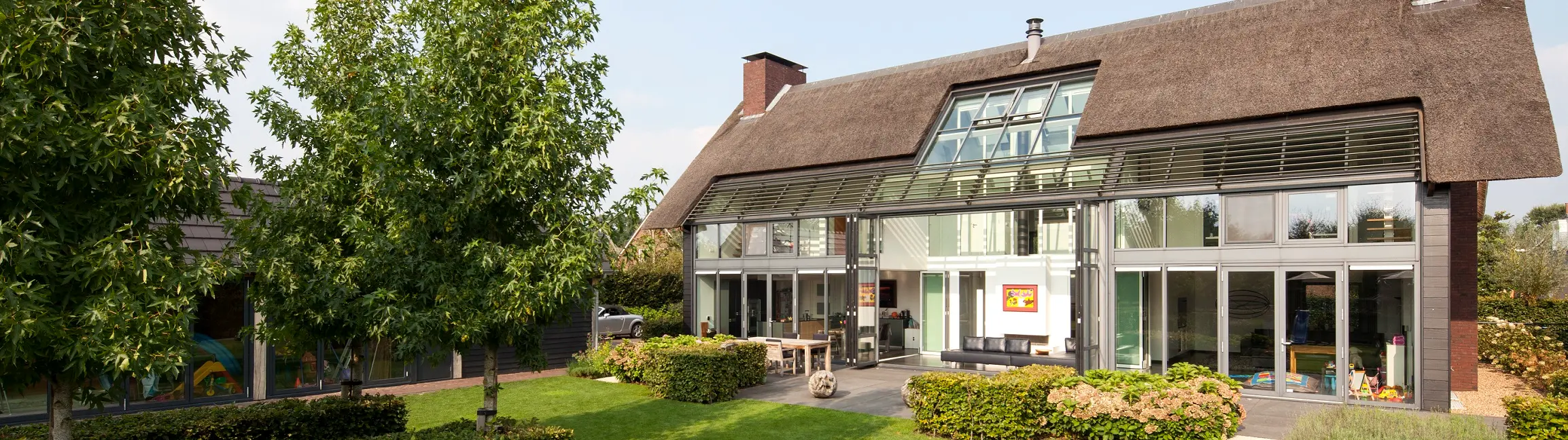 De schuurwoning kent een eenvoudige, ritmische en sfeervolle opbouw. Een dergelijk ontwerp leent zich perfect voor een heldere en duidelijke textuur, met veel lichtinval en transparantie, strakke lijnen, een duidelijke kap (vaak voorzien van rieten dakbedekking), houten details: in zijn totaal een woning met een rustieke en landelijke uitstraling. De kap wordt vaak doorgezet aan de voorzijde of de zijkant, waardoor de leefruimten in de zomer worden afgeschermd, tegen de invallende zon. De ontwerpen bevatten vaak in de zijgevel aangebrachte raampartijen, die verticaal doorsteken naar het dak of als een lichtkap de dakvorm volgen. Ook bij dit woningtype zijn de kozijnen nadrukkelijk aanwezig, maar niet te dominant. De voorgevel is vaak volledig transparant: hiervoor biedt Schüco tal van mooie, betrouwbare en functionele oplossingen. Kortom: de populariteit van de schuurwoning valt te verklaren vanwege de fraaie uitstraling en de hoge mate van duurzaam- en energiezuinigheid.