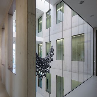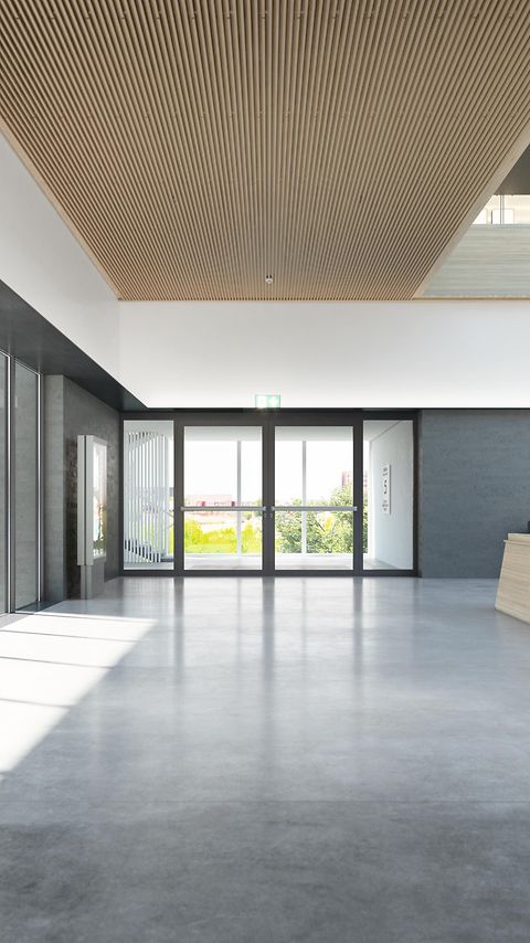 God design bør være uavhengig av sikkerhetskrav. Som intelligente systemløsninger tilbyr Schüco brannsystemer både: maksimal sikkerhet og utmerket design. På denne måten kan det gjennomføres jevne overganger mellom brannelementer og standardelementer.