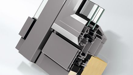 Med Schüco AOC (add-on construction) ivaretas innfesting av glass, drenering, regn- og vindtetthet til såkalte null-profiler som monteres på en bærestruktur av stål eller treverk.