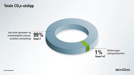 Reduksjonen i CO2-ekvivalenter som Schüco ønsker å oppnå innen 2040 er knyttet til tre områder, kjent som Scopes. Enkelt sagt relaterer Scope 1 seg til utslipp som vi selv produserer gjennom vårt energiforbruk hos Schüco. Scope 2 forholder seg til energien vi bruker, f.eks. strøm som behøves til belysning eller IT-maskinvare. Scope 3 er det mest utfordrende området da dette dekker hele livssyklusen til produktene våre. Dette inkluderer hele forsyningskjeden samt produksjon, bruk og avhending. 99 % av utslippene faller inn under Scope 3; 86 % av disse er innkjøpte varer og tjenester. Dette betyr at Schüco har direkte innflytelse kun over en svært liten del av sine utslipp, og mål for klimabeskyttelse kan derfor bare nås i svært tett samarbeid med leverandører.