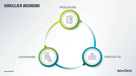 I Schüco er vi overbevist om at bygninger representerer fremtidens råvarelagre. Derfor fremmer vi aktivt en overgang fra lineære til sirkulære konstruksjoner, det vil si til lukkede materialkretsløp. Et eksempel på dette er våre Cradle-to-Cradle-sertifiserte systemer.