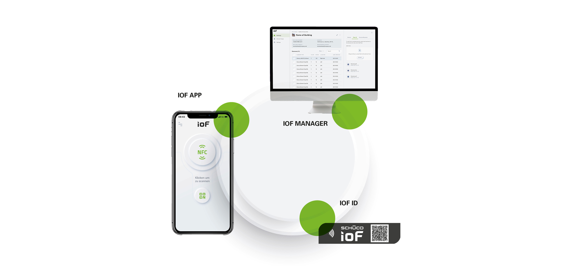 Schüco-produkter vil fra 2025 som standard være utstyrt med en IoF ID. Dette inkluderer alle låser og girbokser som installeres i Schüco-elementene. Vi har samlet det viktigste om IoF og det å skape en digital tvilling i en flyer.