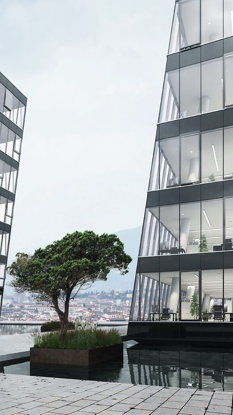 Elementfasader fra Schüco er ensbetydende med økonomisk produksjon og montering. De kan implementeres i prosjekter basert på standard komponenter tilpasset ulike ønsker og behov, eller en spesielt tilpasset fasade utviklet på grunnlag av en systemløsning.