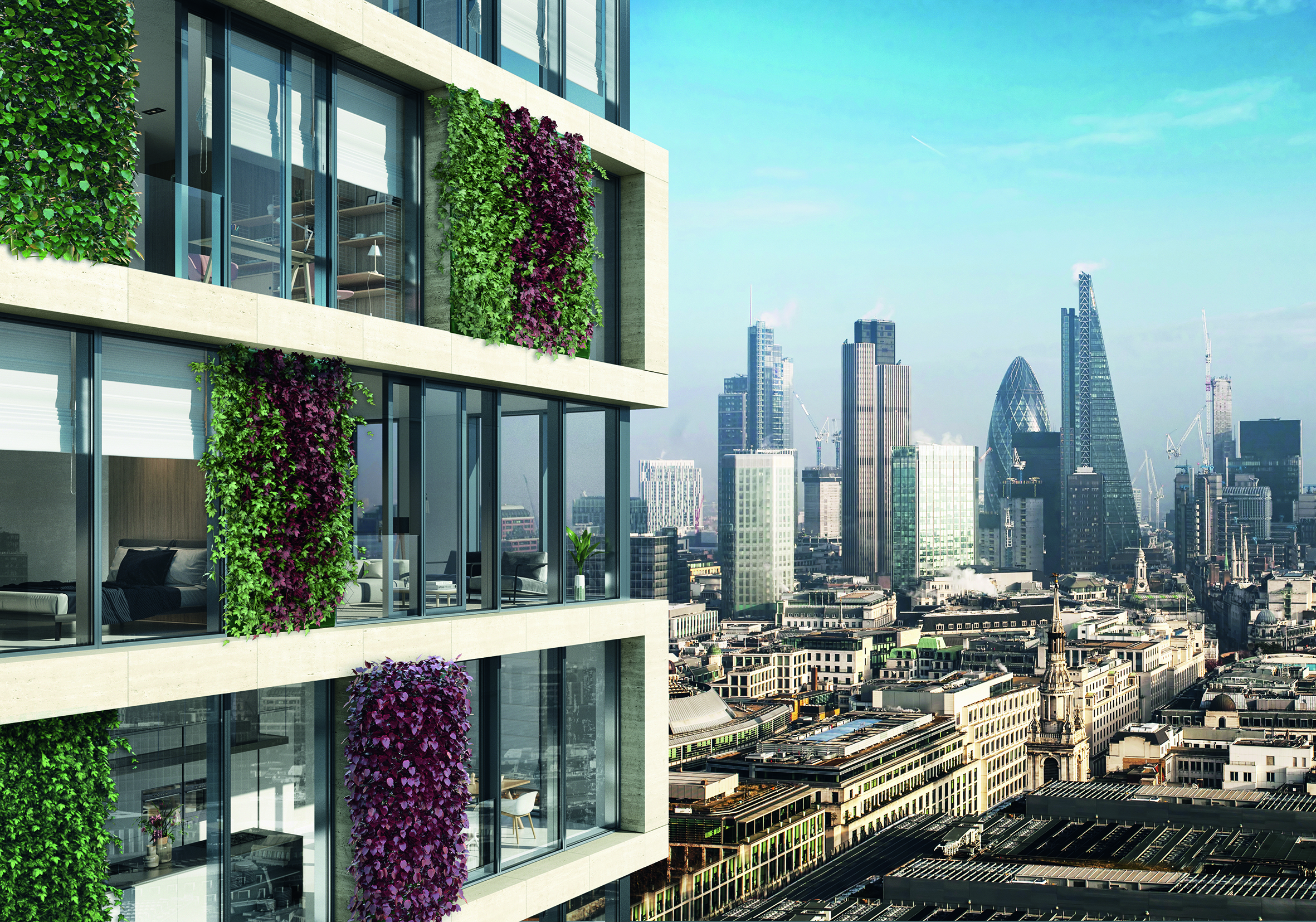 Instead of the greenery being planted in the ground, the Schüco AF UDC 80 Green Façade offers a solution where the plants grow on the façade itself.