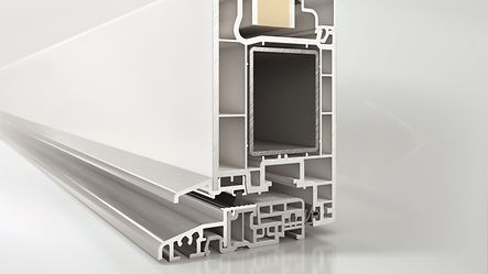 A soleira da porta de 20 mm é feita de um inovador composto de plástico / alumínio e é compatível com os sistemas de portas Schüco LivIng e Schüco Corona CT 70 em PVC-U.