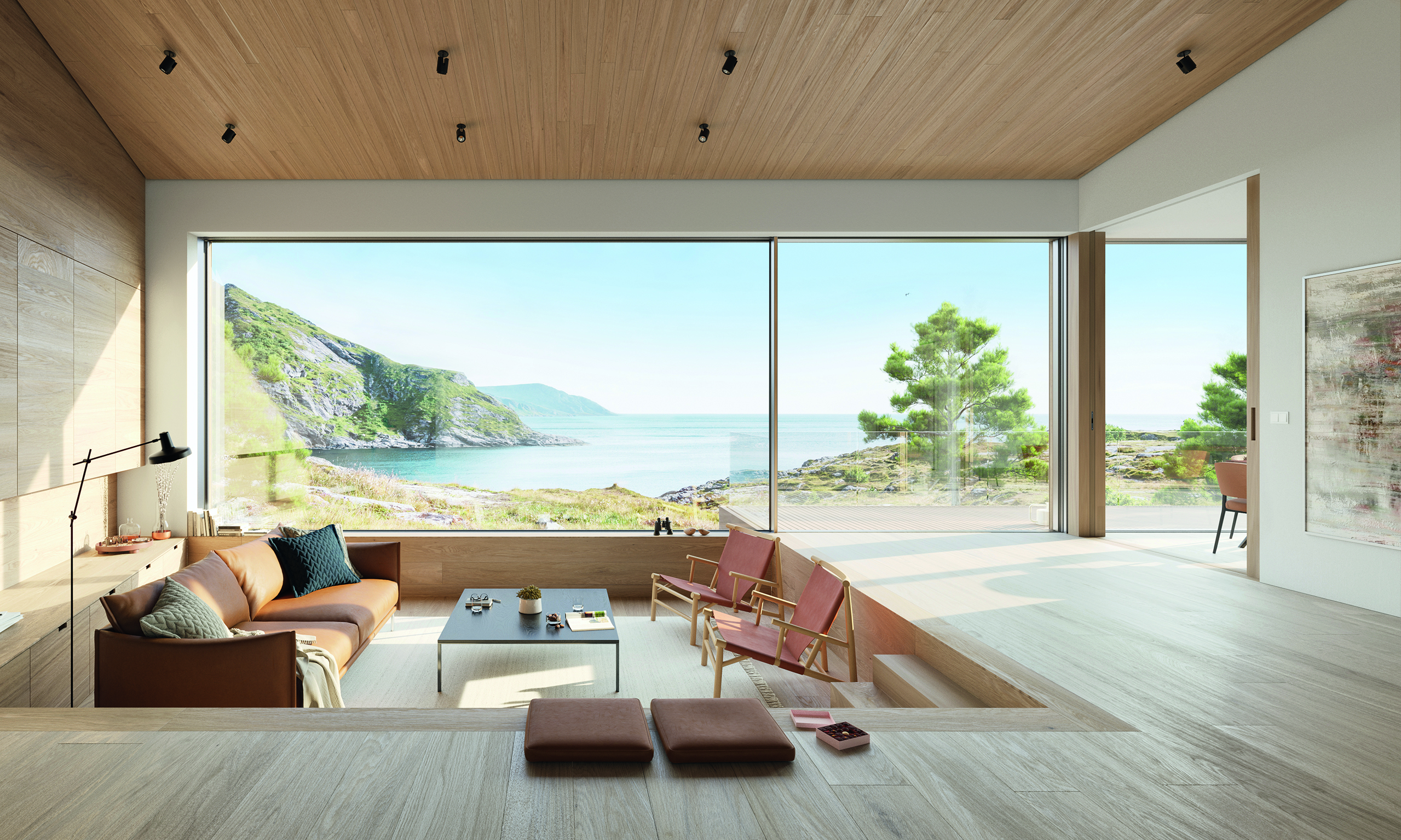 The new Schüco AS PD 75.HI (Performance Line) lift-and-slide technology combines concealed frame profiles with a barrier-free threshold for the very first time.