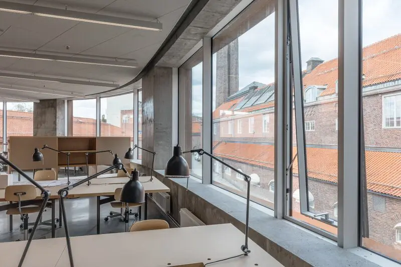 Konceptet bygger på idén om ett öppet campus med en ljus interiör som kan fungera som en arbetsyta, utställningslokal och föreläsningssal. Bottenvåningen ansluter sig till den befintliga gatan utanför och byggnadens översta våning bjuder på en generös takterrass. Stora fönsterband släpper in generöst med dagsljus och garanterar ett optimalt klimat inomhus.