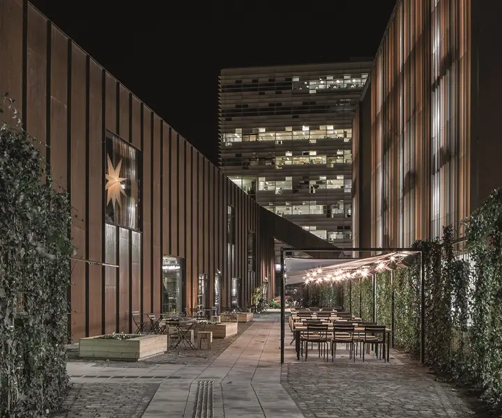 I den gamla magasinsdelen bidrar panoramafasaden Schüco FWS 35 PD med dagsljus. De smala profilerna fungerar utmärkt tillsammans med de befintliga renoverade gjutjärnsfönstren. I markplan av den nya cortenklädda tillbyggnaden öppnar vikdörr Schüco ASS 80 FD upp mot den anlagda trädgården intill det befintliga parkeringshuset. Övriga fönster har konstruerats med glasfasad Schüco FWS 50.