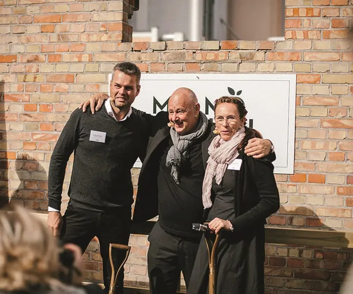I anslutning till pocket parken öppnar vikdörrar upp. Hela väggen viks enkelt undan vilket skapar utomhuskänsla inomhus och tar med sig det behagliga bruset inifrån saluhallen till dem som väljer att sitta ute. Vikdörren blir således en länk mellan saluhallens olika rum samtidigt som den klarar av alla väderför- hållanden. För att klara Malmös höga vindlaster föll valet på Schücos vikdörr ASS 80 FD. Joakim Lyth uppskattar fördelarna med ett brett kvalitetssortiment från en och samma leverantör. Lösningarna matchar varandra och gestaltningen blir mer flexibel.
