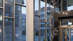 – Man får inget gratis på 50 meters höjd, men vi anlitade Öjebyns Glas & Aluminium, som är en långvarig och kompetent samarbetspartner. Vi var med och påverkade storleken på glasen, man måste kunna byta rutor på ett rimligt sätt. Så nu går det att få in glasen via gods- och servicehissar, säger Leif Sundström, arbetschef på Nåiden Bygg som var totalentreprenör.