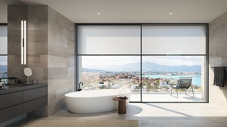 Schücos nya plattform för panoramaskjutdörrar Schüco AS PD 75.HI uppfyller högt ställda krav på komfort och design. Systemet erbjuds i tre olika utföranden. Access Line som säkerställer en slät tröskel och enkel åtkomst mellan in- och utsida. Design Line erbjuder en design med karmen dold i golv, väggar och tak och därmed en maximal transparens och ostörda utsikter. Performance Line kombinerar nästintill alla alternativ för en excellent design och är systemets mest exklusiva variant.