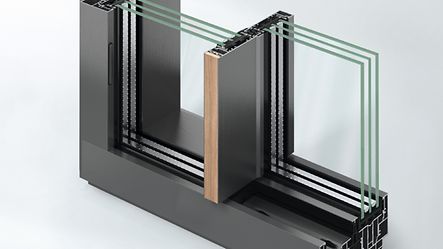 Detta kan med fördel kombineras med Schücos fönster i samma utseende - Schüco AWS WoodDesign.