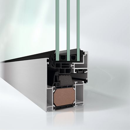 Detta är ett sofistikerat system med optimerade energieffektivitetsåtgärder genom att isolering och tätningar i karm och båge har optimerats för att kunna kombinera smala profilbredder med ett mycket lågt Uf-värde.