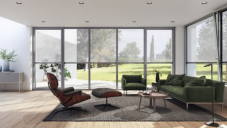 Från hög transparens till ogenomskinlig: Beroende på det valda foliet eller materialet kan systemet helt mörka rummet eller erbjuda perfekt utsikt genom en hög transparens - även när det är helt sänkt. Utbudet av olika material kan kombineras fritt med varandra.