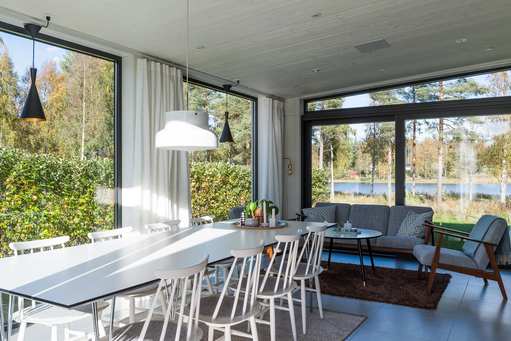 Undvik det vanligaste misstaget – att bygga för litet. En fin matplats och en skön soffgrupp och plötsligt blir det trångt. Ta till några kvadratmeter extra, det kommer du inte att ångra. Provmät sittgrupper och matsalsmöblemang för att få grepp om vilka ytor som krävs för att rummet ska kännas luftigt och behagligt.