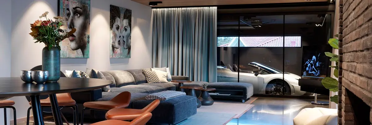 Planlösningen påminner om den gamla sommarstugan med stora, öppna ytor för social samvaro. Öppenheten förstärks av bostadens många glas- och skjutpartier som vetter mot havet samt de spegelförsedda garderoberna i hallen. Tomas rekommenderade Schüco och företagets skjutpartier spelar en avgörande roll för att kunna förverkliga alla siktlinjer som noggrant tagits tillvara.