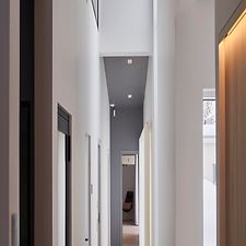 Nattzon: den privata zonen inkluderar familjens sov- och våtrum och består av en lång och nästan transparent korridor som filtrerar ljuset och ger indirekt och rikligt ljusinsläpp till sovrummen. Korridoren skapar ett gemensamt rum med direkt tillgång till trädäcket och poolen.