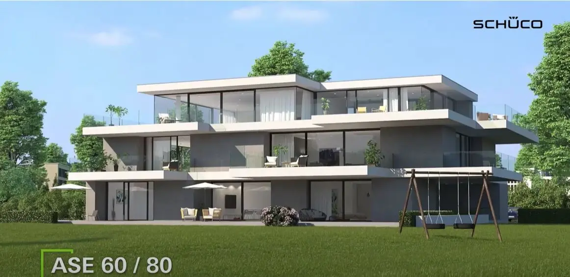 Schüco arbetar konsekvent med att vidareutveckla våra produkter för att passa marknadens allt högre krav. Resultatet är en ny plattform skjutdörrar, ASE 60 och 80 (Aluminium Sliding Element med 60 alternativt 80 mm byggdjup). En plattform som bjuder på helt nya dimensioner. Väsentligt förbättrad isolerförmåga ända ner till passivhusnivå (gäller byggdjup 80 mm). Utökat antal typer och öppningsvarianter med 1-, 2- och 3-spårskarm som baserar på multifunktionsprofiler samt ett modulärt beslagssystem vilket även kan användas för lyftskjutdörrar. De flesta ingående komponenter kan användas till både 60- och 80-varianten vilket gör tillverkningen flexibel. Dessutom kan de nya systemen byggas i större storlekar med ännu smalare synliga profiler.