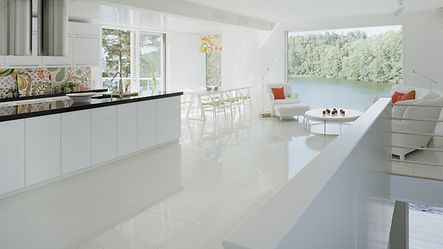 De interiöra rummen riktar sig mot specifika element i landskapet: berget, sjön och blåbärsriset. Fasaden består av naturanodiserad aluminium som reflekterar och återger omgivningen med variationer över året och dygnet.