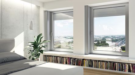 Det multifunktionella Schüco VentoTherm Twist-systemet, implementerat i samarbete med Renson ©, tillför automatiskt frisk luft till interiören. Intelligenta sensorer känner av rumsklimatet och möjliggör kontrollerad luftväxling utan att fönstret behöver öppnas.. Energiförbrukningen, inomhusklimatet och luftkvaliteten kan därmed hållas på en optimal nivå Schücos ventilationssystem passar såväl vid renovering som nybyggnation.