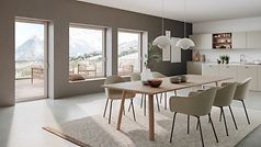 Izbová strana blokových okien Schüco AWS WoodDesign je obložená dekoračnými lištami z pravého dreva, čím vzniká okno, ktoré spája to najlepšie z oboch svetov: vysoké úžitkové vlastnosti hliníkového okna s prirodzenou útulnosťou dreveného povrchu.