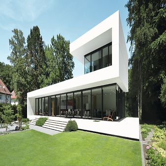 Individuálne navrhnuté vchodové dvere od spoločnosti Schüco dodávajú veľmi osobný charakter. Vďaka širokej škále dizajnových variantov ich možno dokonale prispôsobiť vlastným želaniam a architektúre domu.