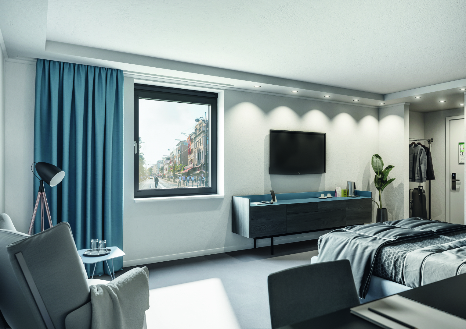 Schüco VentoTherm Twist s hybridným vetraním poskytuje základné vetranie. Dodatočné vetranie oknami sa dá inteligentne automatizovať pomocou pohonov Schüco TipTronic SimplySmart a poskytuje dodatočný čerstvý vzduch, napr. pri vysokej obsadenosti miestnosti.