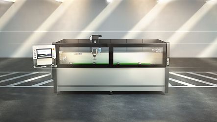 - Machining head mounted on one side (can be rotated using two numerically controlled movement axes)