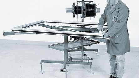 Setting up several tables for facade profiles in a line provides an ideal environment for assembling large units. The tables can be moved easily into position on rails. They can also be moved to one side when not required.