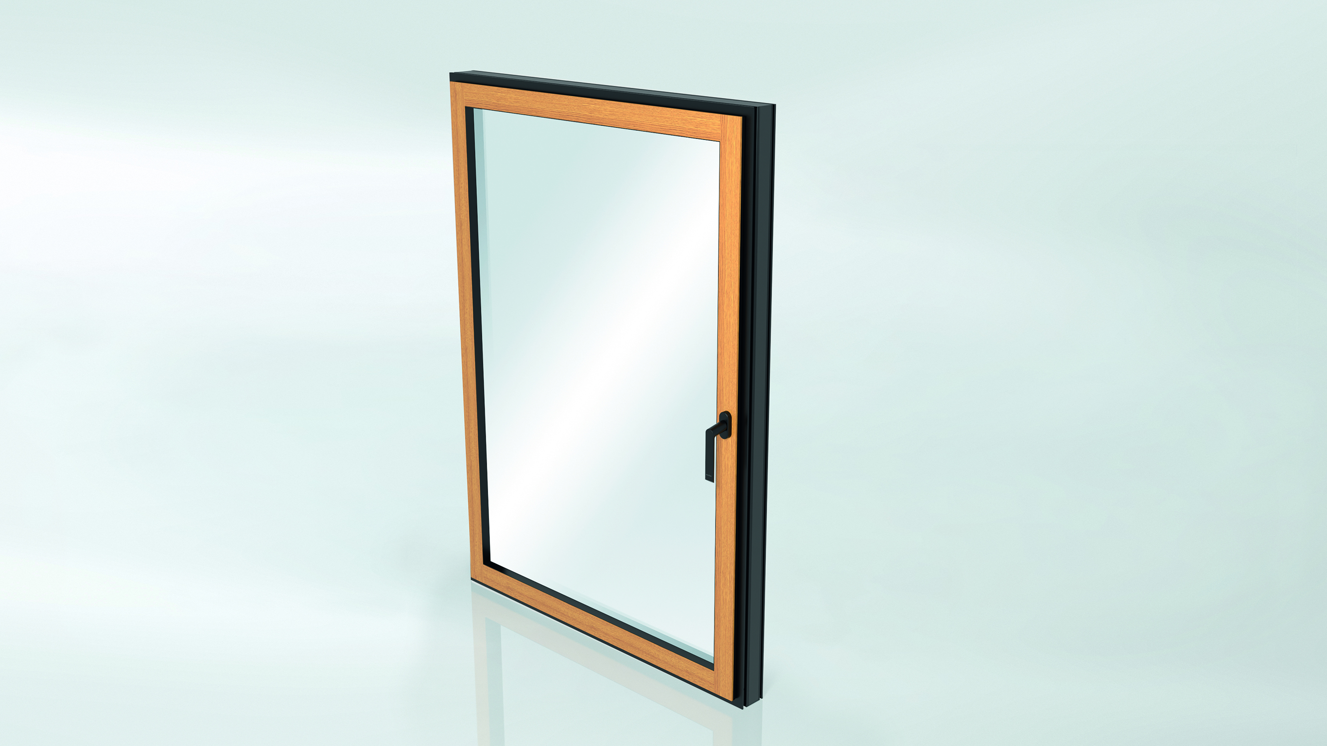 Schüco AWS (Aluminium Window System) WoodDesign is available for the existing aluminium block window systems Schüco AWS 75 BS.HI+, AWS 75 BS.SI+ and AWS 90 BS.SI+ (shown in image).