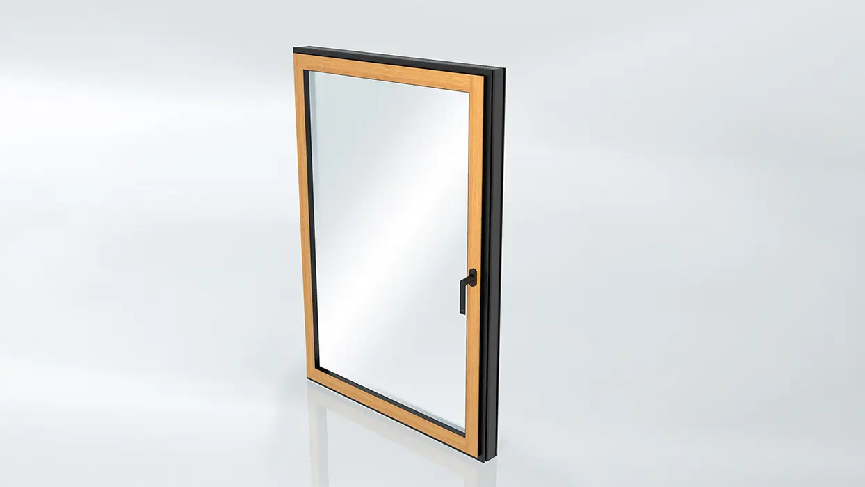 Schüco AWS (Aluminium Window System) WoodDesign is available for the existing aluminium block window systems Schüco AWS 75 BS.HI+, AWS 75 BS.SI+ and AWS 90 BS.SI+ (shown in image).