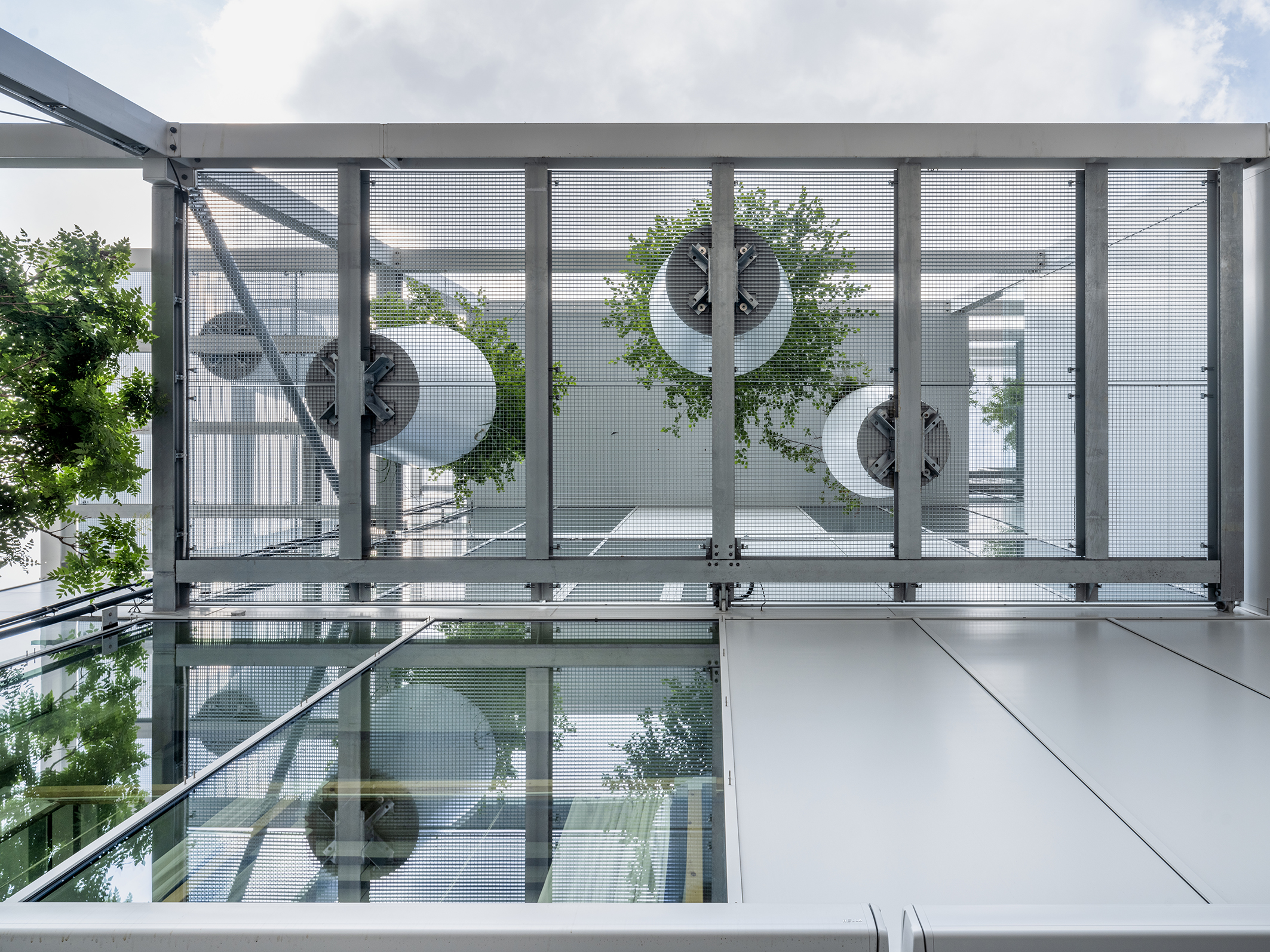 The roof exit above the atrium is enclosed in glass. The Schüco FWS 50.SI mullion/transom system was used here too.