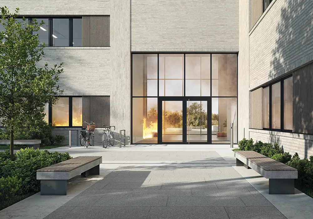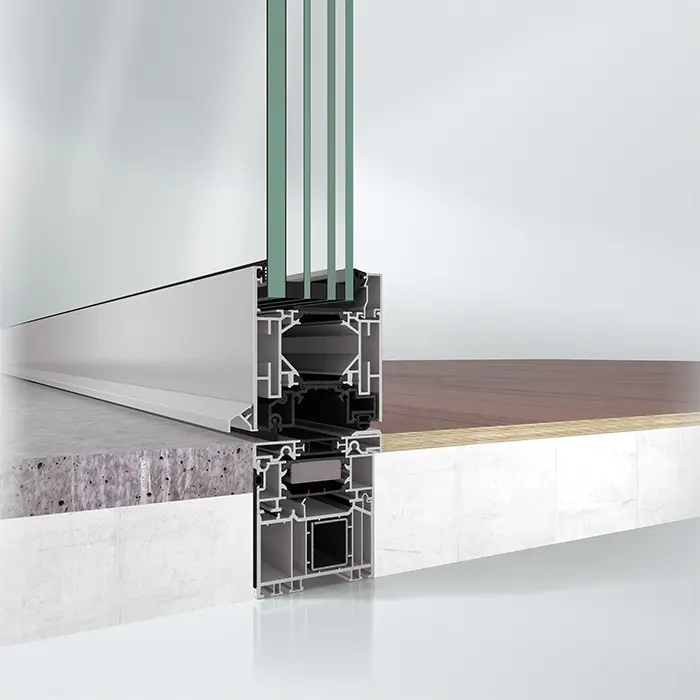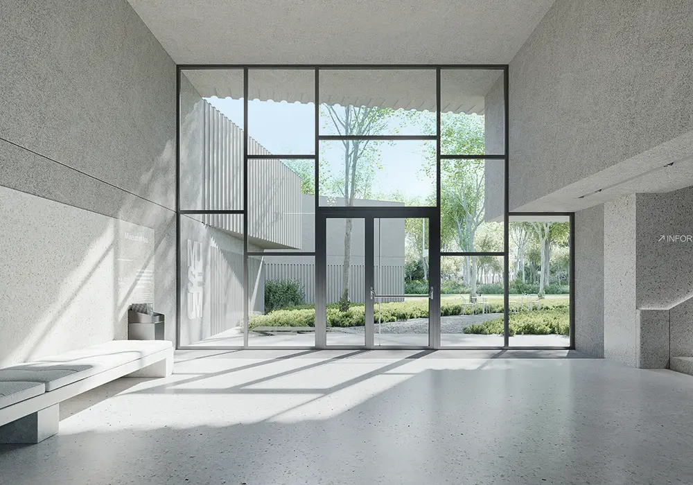 Narrow profile face widths alongside concealed fittings and door closers ensure an elegant, minimalist door design with a high level of transparency.