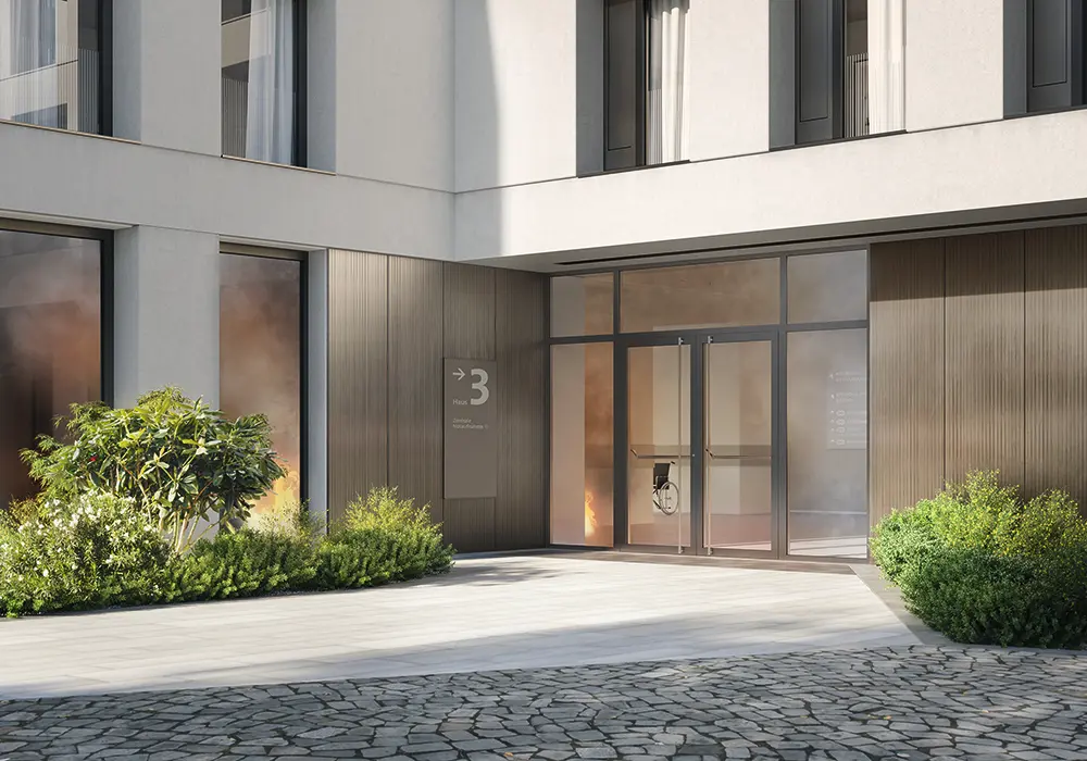 With Schüco FireStop ADS 90 FR 30-CE, Schüco is expanding the FireStop system platform to include aluminium fire doors for external use. The doors are CE-classified in accordance with EN 16034 for 30 minutes of fire resistance and EN 14351-1 for excellent weathertightness values.