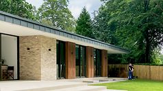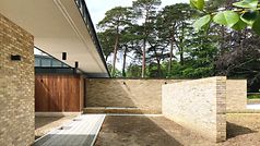 Located in Devon, Kyrchil is a light, bright and efficient contemporary bungalow designed by DMW Architects and completed by Camel Glass. The living spaces are grouped together on the south side of the plan, while the bedrooms, bathrooms and an office occupy the north side. Intended to complement the rural context, the material palette includes lichen-green standing-seam zinc roofing, treated hardwood cladding and blue-grey long-format bricks. The latter is reminiscent of Purbeck stone and have a rough-hewn surface that matches the colour of the mortar.