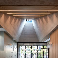 An oculus draws light into the multi-use spaces on the upper levels, focusing views towards the sky. Schüco Jansen’s Janisol steel system is used to form the glazed north and south entrances while Schüco AWS 60 aluminium windows are deployed on the east facade.
