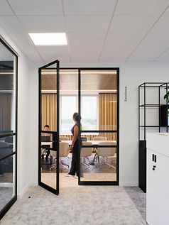 Enhancing the user experience, the Jansen Art’15 Fire NR E-EW offers the choice to forgo a lock, improving ease of use. Additionally, the system features optional integrated door closers, which enhance functionality and convenience. A range of slimline door hinges, available in both steel and stainless steel, provides an elevated look and allows individual design requirements to be achieved. These hinges not only enhance the aesthetic appeal of the doors but also ensure smooth operation and long-lasting durability. The combination of these features makes the Jansen Art’15 Fire NR E-EW a versatile and reliable choice for architects and interior designers looking to incorporate stylish fire-rated doors into their projects.
