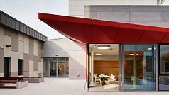 The Schüco FW 50+ SG curtain walling gives the façade a light, clean feel and the design incorporates different coloured panels, giving the building a more playful look. FWS 50 curtain walling, with deep nosing caps and ‘floating’ aluminium box sections on the north façade, gives privacy to patients using the hospital’s main corridor while still allowing for views of Dublin Bay in the distance.