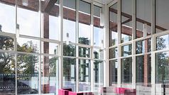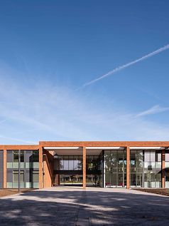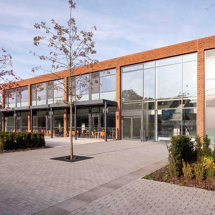 A Hampshire red stock brick is used throughout the campus reflecting the finely proportioned garrison buildings located across the town. This is part of a palette of robust materials including Schüco aluminium windows, doors and curtain walling.