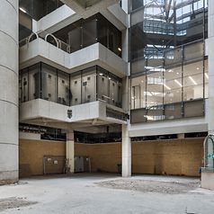 The overall refurbishment includes a full restoration of One Portsoken Street’s original design elements to preserve the building’s history as an example of Brutalist architecture. All modern finishes were kept neutral to better compliment the design. Standout elements include circular turrets, exposed concrete and steel beams, and a naturally lit space on the top floor, featuring amazing views of the city through the atrium’s original glass roof.
