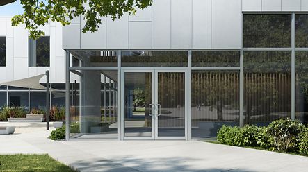 An additional advantage is that Schüco offers the seamless integration of door, window and also façade systems. For example, the AWS 70 SC window system can be combined with Schüco GFT 50, an external door system designed for high traffic areas which includes an anti-finger trap solution. By integrating the thermally broken façade system Schüco FWS 50 a solution for the whole building envelope is created.