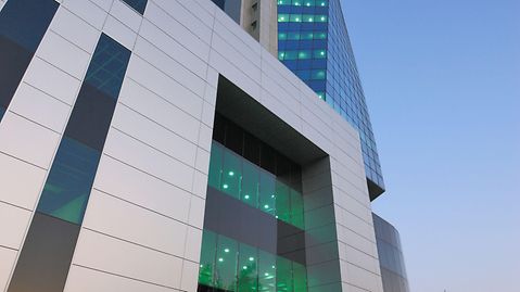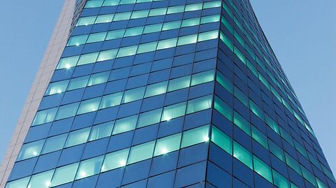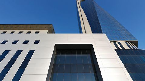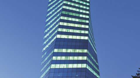 The architectural idiom of pure geometrical shapes is rooted in 20th century Russian Constructivism, which consciously used art and architecture to convey information. The orthogonal towers consist of stacked cubes twisted in relation to one another on a vertical axis. The cubic floor plans allow for a generous spatial design as well as extremely efficient building technology. The twisting breaks up the geometric rigidity, making the skyscrapers more dynamic. Schüco aluminum façade systems were used for the façade. Vertical strips alternating with light and dark panels stress the partially flush shiny glass elements. The large module widths and installation heights created by using the thermally insulated façade system, Schüco FW 60+, afford the residents magnificent views of the river, the glamorous business center, and the historic city center.