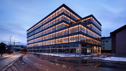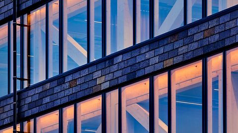 With Magasin X in the Swedish city of Uppsala, the White Arkitekter office has created a new, seven-storey, timber office building that combines resource efficiency with durability and flexibility. The view from outside is dominated by the large glass façade as well as the continuous ribbon façades made of Norwegian slate.