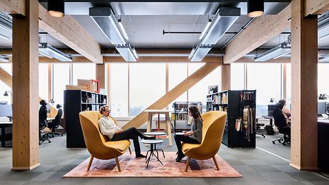 The newly built Magasin X next door to Uppsala train station was actually supposed to have been constructed using conventional steel and concrete. Instead, while the project was ongoing, the project developer Vasakronan decided to construct the building entirely out of timber to ensure that the company’s goal of climate neutrality could be achieved by 2030. The result is a compact building – now certified in accordance with the LEED platinum standard – which offers a total of 11,500 square metres of office space spanning seven floors, some of which are recessed. One striking feature of the design created by White Arkitekter is the glass façade with generous openings combined with the continuous low spandrels, which are clad on the outside with shimmering red slate shingle.