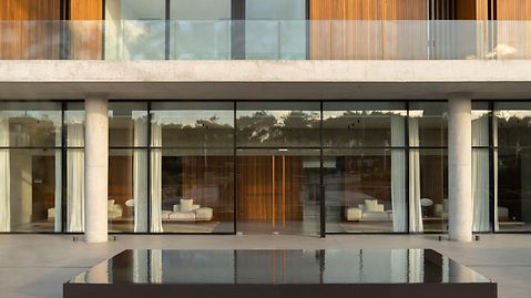 For indoor areas or regions with low thermal insulation requirements, the Schüco ASS 50.NI (Non-Insulated) sliding and lift-and-slide system offers optimum solutions with high transparency. With its narrow profile face widths, the non-insulated aluminium construction enables large glass areas to be created permitting maximum light penetration, all whilst requiring a minimum amount of space and generating almost no noise when the sliding units move.