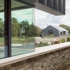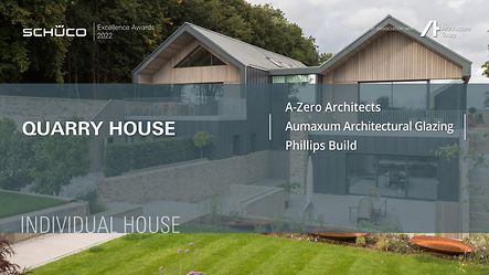 Quarry House by A-Zero Architects occupies a disused Oxfordshire quarry, nestled between open fields and a deciduous forest. Designed to Passivhaus standards, the building is organised around a central double-height atrium and is constructed from masonry at the base and timber on the upper floor. The architect first approached specialist contractor Aumaxum during the design phase to better understand how the Schüco systems, including FWS 60.SI Green curtain walling, AWS 90.SI windows, and ASE 80.HI sliding doors, could support the journey to Passivhaus compliance.