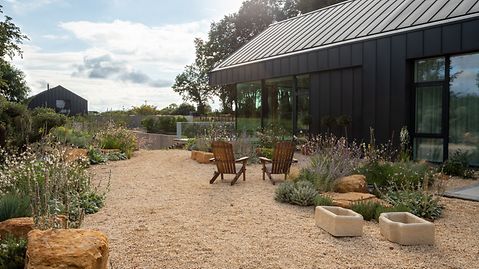 All the façade junctions have been simulated and designed to eliminate thermal bridging. Fresh air is provided mechanically with heat recovered from out-going air. A heat pump harvests heat from a 1,400-square-metre ground collector located one metre below the landscape. Electricity is provided by PV panels.