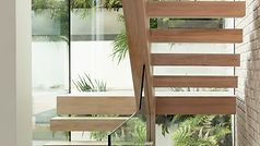 The open-plan nature of the house required a detailed fire strategy, including an automatically opening smoke vent positioned at the top of the staircase. The ceiling soffit around this rooflight is dressed into the opening, concealing the frame, and allowing daylight to pour down the stairwell into the centre of the plan.